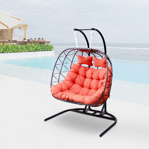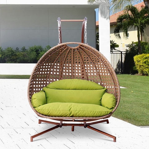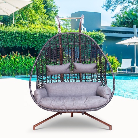 高級モダンホームトレンドガーデンウィッカー家具屋外パティオ籐ダブルハンギングエッグスイングラウンドチェアスタンド付き