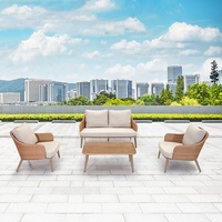 モダンブラウンパティオウィッカーアルミ会話ラタン家具屋外ガーデン4ピースラタンソファセット