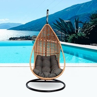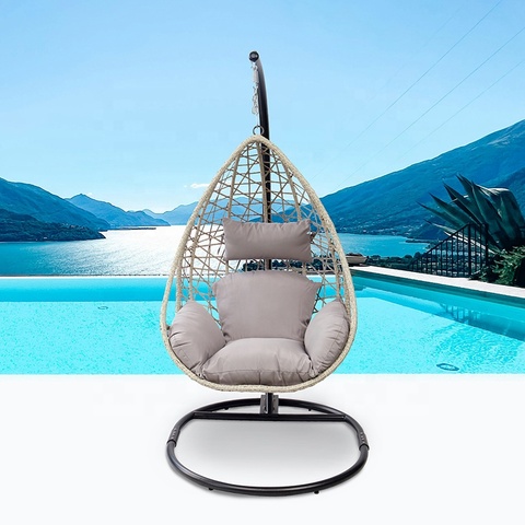 モダンデザイン庭庭用ウィッカー金属家具屋外パティオティアドロップラタン吊りスイングチェアスタンド付き