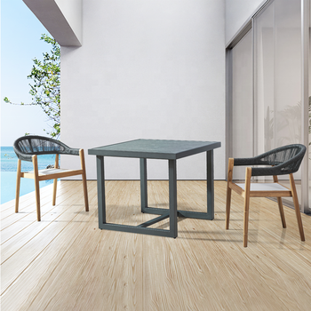 Modern Leisure Pátio Café Teca Madeira 4 Peça Jantar Set Móveis Outdoor Garden Alumínio Mesa Café e 3 Cadeiras Seater