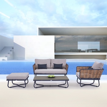 Confortável e moderno conjunto de sofás de alumínio para pátio externo, conjunto de móveis para jardim e salão externo barato