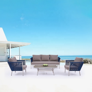 Melhor Modern Blue Pátio Conversação Sofá Loveseat Móveis Outdoor Garden Aluminum Rope Sectional Sofa Set